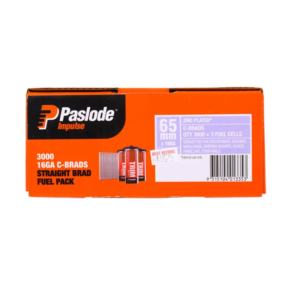 PASLODE 65 x 1.6mm Zinc Plated C65 Impulse Brad with Fuel 3000 pk B20632