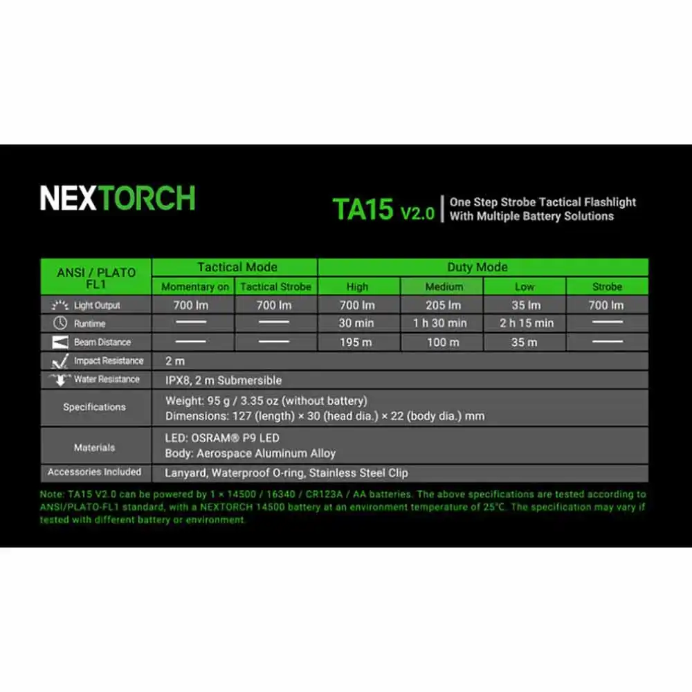 NEXTORCH 700 Lumens TA15 Torch Led Compact & Lightweight NTTA15