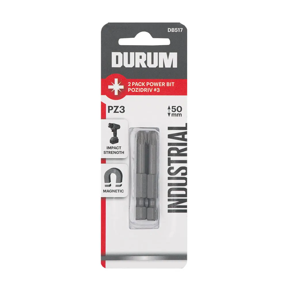 DURUM Pz3 x 50mm Pozidrive Power Screwdriver Bit - 2 Piece DB517