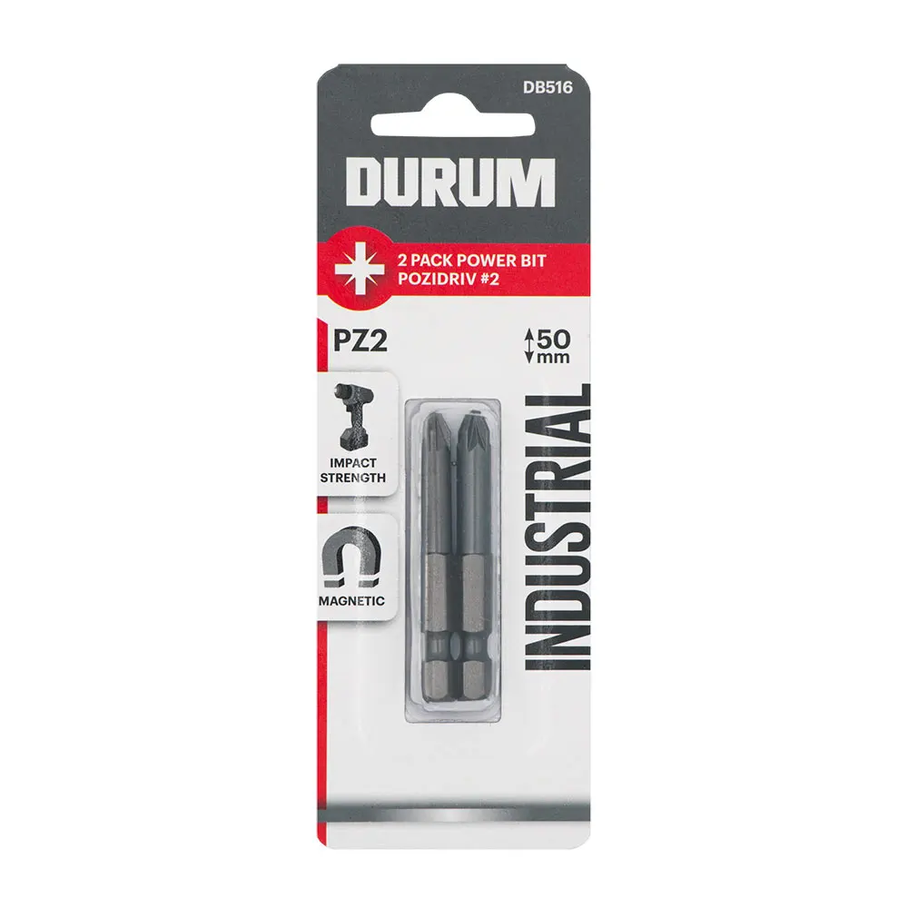 DURUM Pz2 x 50mm Pozidrive Power Screwdriver Bit - 2 Piece DB516