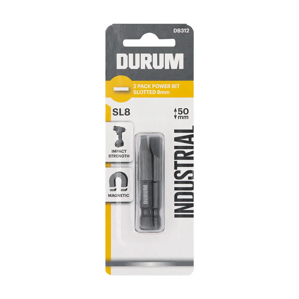 DURUM 8 x 50mm Slotted Power Screwdriver Bit - 2 Piece DB312