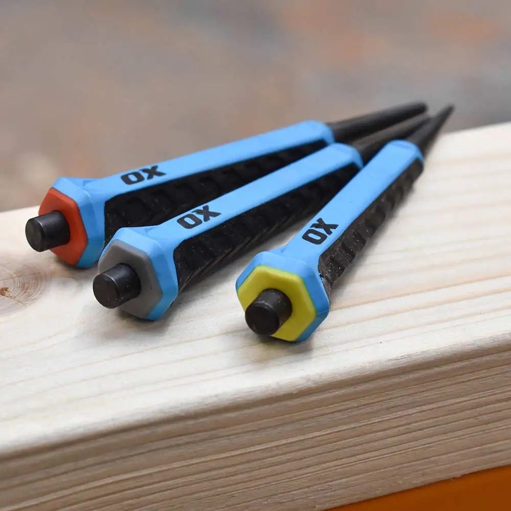 OX 0.8 X 1.6 X 2.4mm Soft Grip Nail Punch Set - 3 Piece OX-P095031