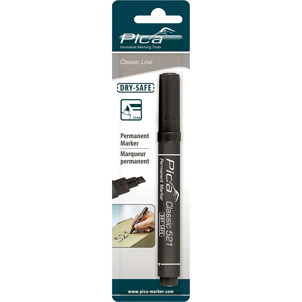 PICA Classic Permanent Marker Bullet Tip BLACK Blister Hang Sell 52046SB