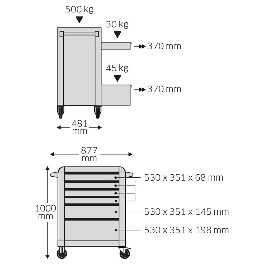 STAHLWILLE SW13217 6 Drawer Polypropylene Tool Trolley - Black 81091306
