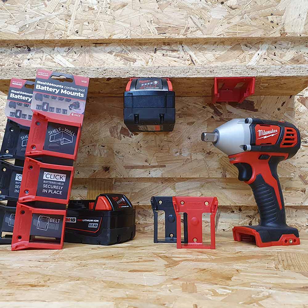 STEALTHMOUNTS Battery Mount Holder for Milwaukee 18V - 6 Pack