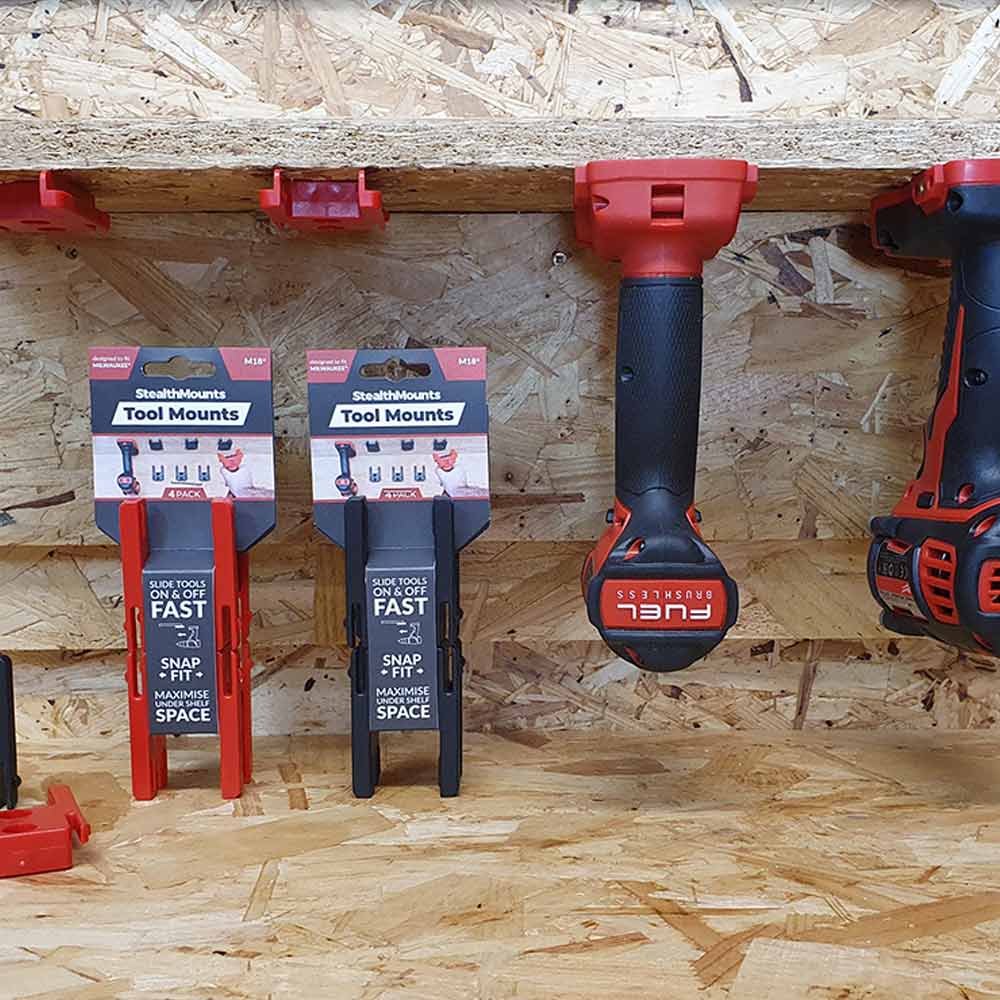 STEALTHMOUNTS Tool Mount Holder For Milwaukee 18V Red - 4 Pack TM-MW18-RED-4