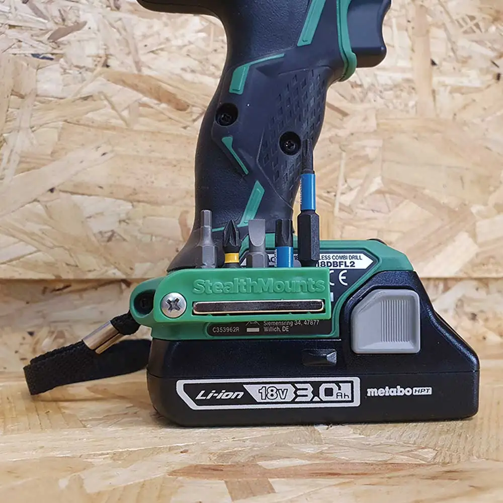 STEALTHMOUNTS Bit Holder for Metabo/Hitachi/HiKOKI Green 18V/36V - 2 Pack BH-MHH-GRN-2