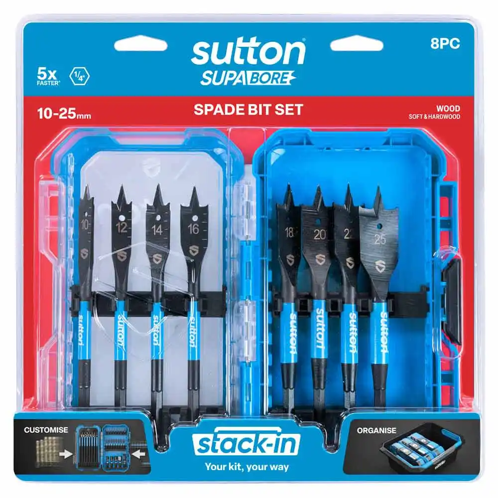 SUTTON Supabore 10-25mm Wood Spade Drill Bit Set Stack-In - 8 Piece D501S08A