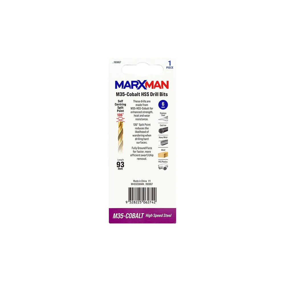MARXMAN 6.0 x 93mm HSS-Cobalt Metal Jobber Drill Bit MHSSCO6MM