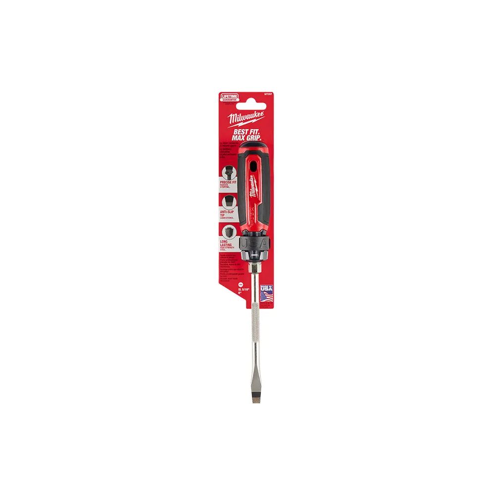 MILWAUKEE 8mm x 152mm USA Made Acetate Soft Grip Handle Slot Screwdriver MT207